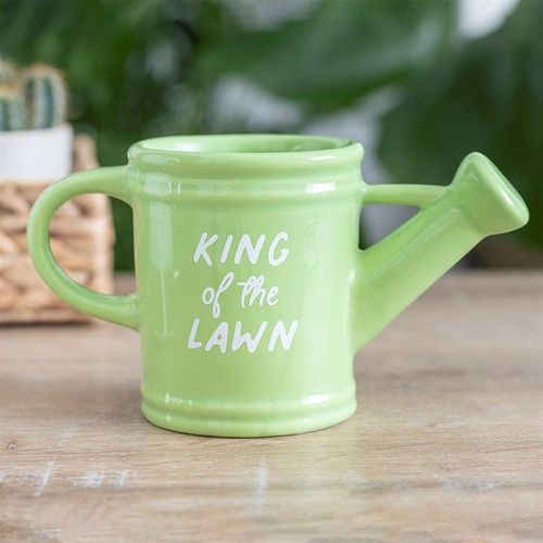Gardeners of all kinds are sure to be delighted when gifted this novelty mug. Shaped like a classic watering can and features white 'King of the Lawn' text. Holds approximately 500ml. Dishwasher and microwave safe. Product Dimensions: H10cm x W19cm x D8cm Packaged Dimensions: H13cm x W22cm x D11cm