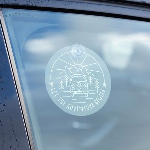 Declare your love for the great outdoors with this window sign. This charming accessory features a cheerful campervan design with "Let the adventure begin" text that's perfect for adorning your vehicle or home window. This window sign shares a camper's passion and is sure to put a smile on the faces of fellow travellers.