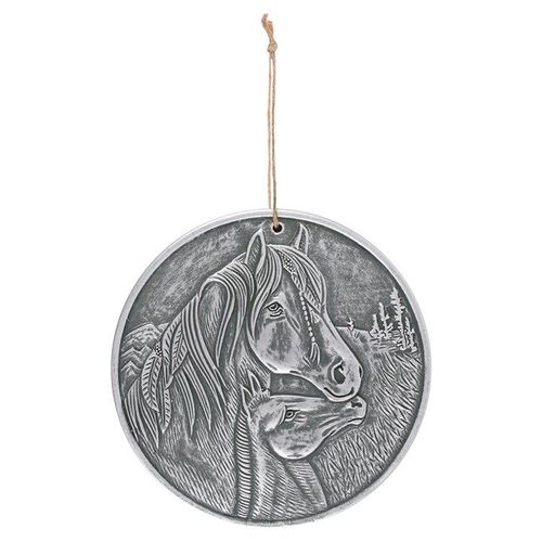 This beautifully crafted terracotta plaque features a Apache horse design by artist Lisa Parker, the plaque has been finished in an antiqued silver effect paint.